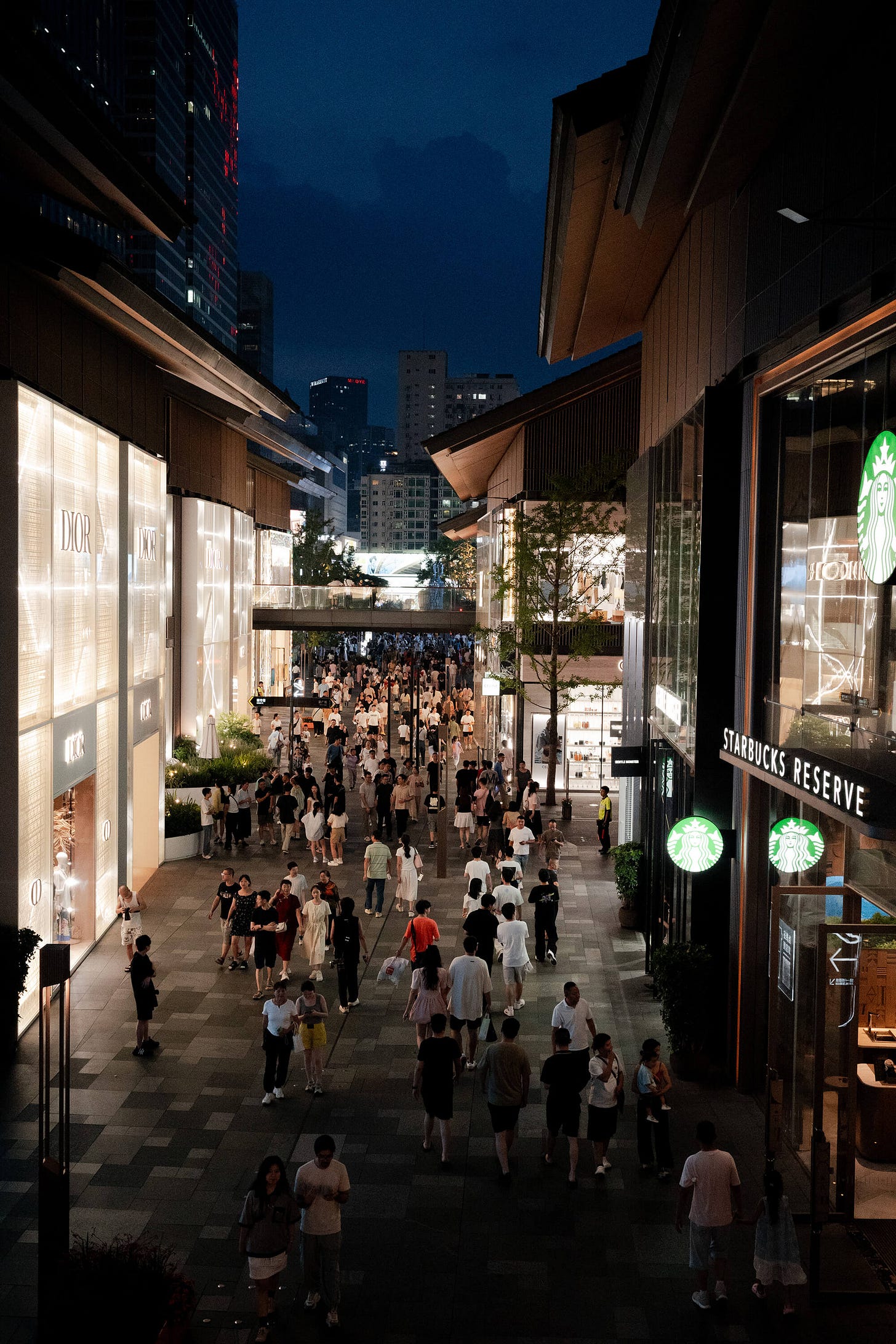 Unlike a typical mall, there are no single entry or exit points, nor escalators that make you follow a set path around each floor. Most malls are designed like supermarkets, where essentials like milk are placed at the very back so you’re made to walk past everything else first. Taikoo Li Chengdu flips that logic. Its open-lane layout and multiple access points let you enter from different streets and wander freely without feeling trapped. The low-rise blocks and outdoor walkways make it easy to slip in for one thing and actually leave with just that, without being held hostage by four walls and a ceiling.